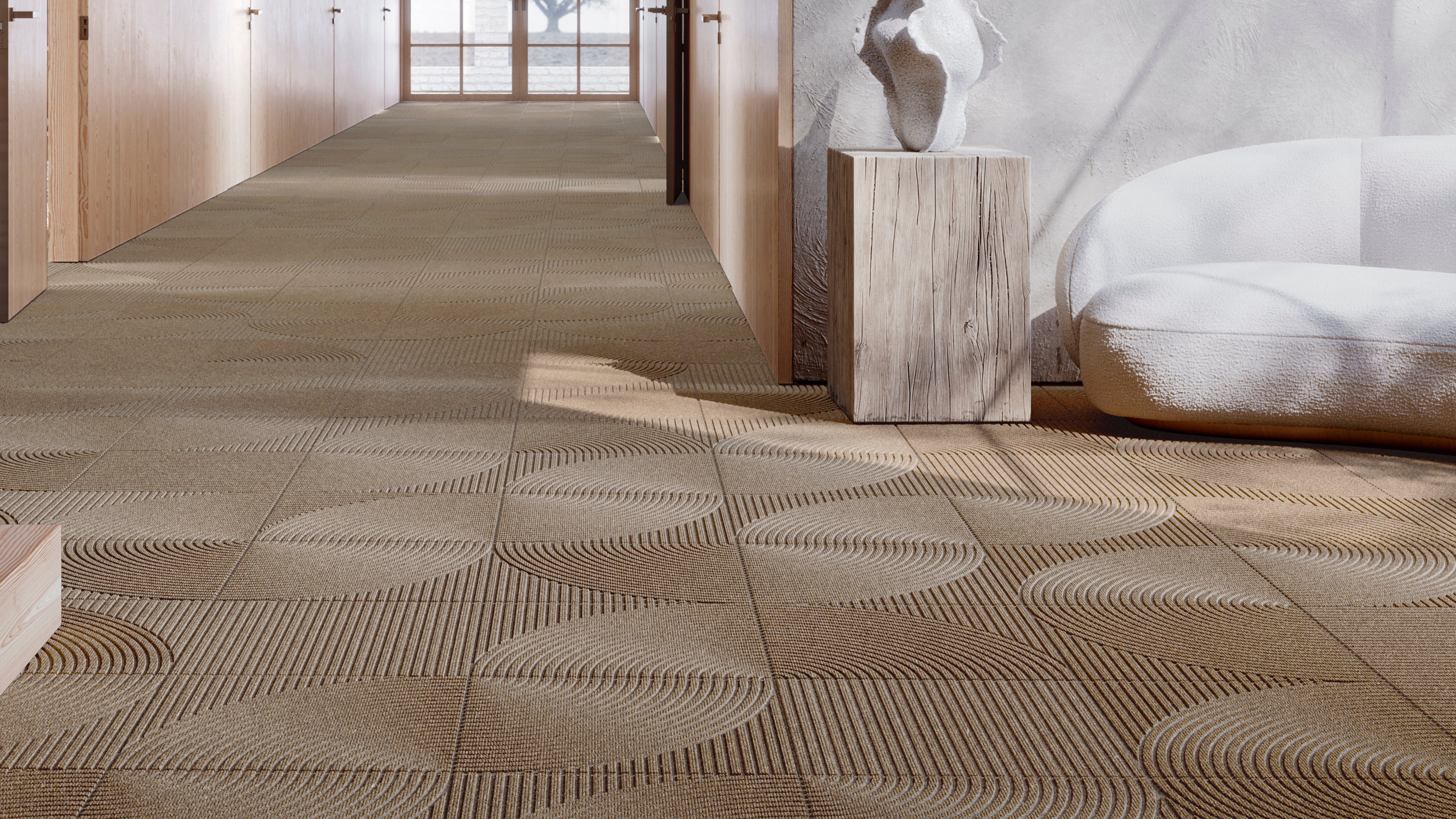 The pattern of the tiles, named Zen, is crafted by Norwegian designer Kristine Five Melvær, drawing inspiration from the peace found in Japanese gardens. With three subtle yet captivating pattern types, these tiles can be combined in countless ways, creating a harmonious flow that complements any interior project.